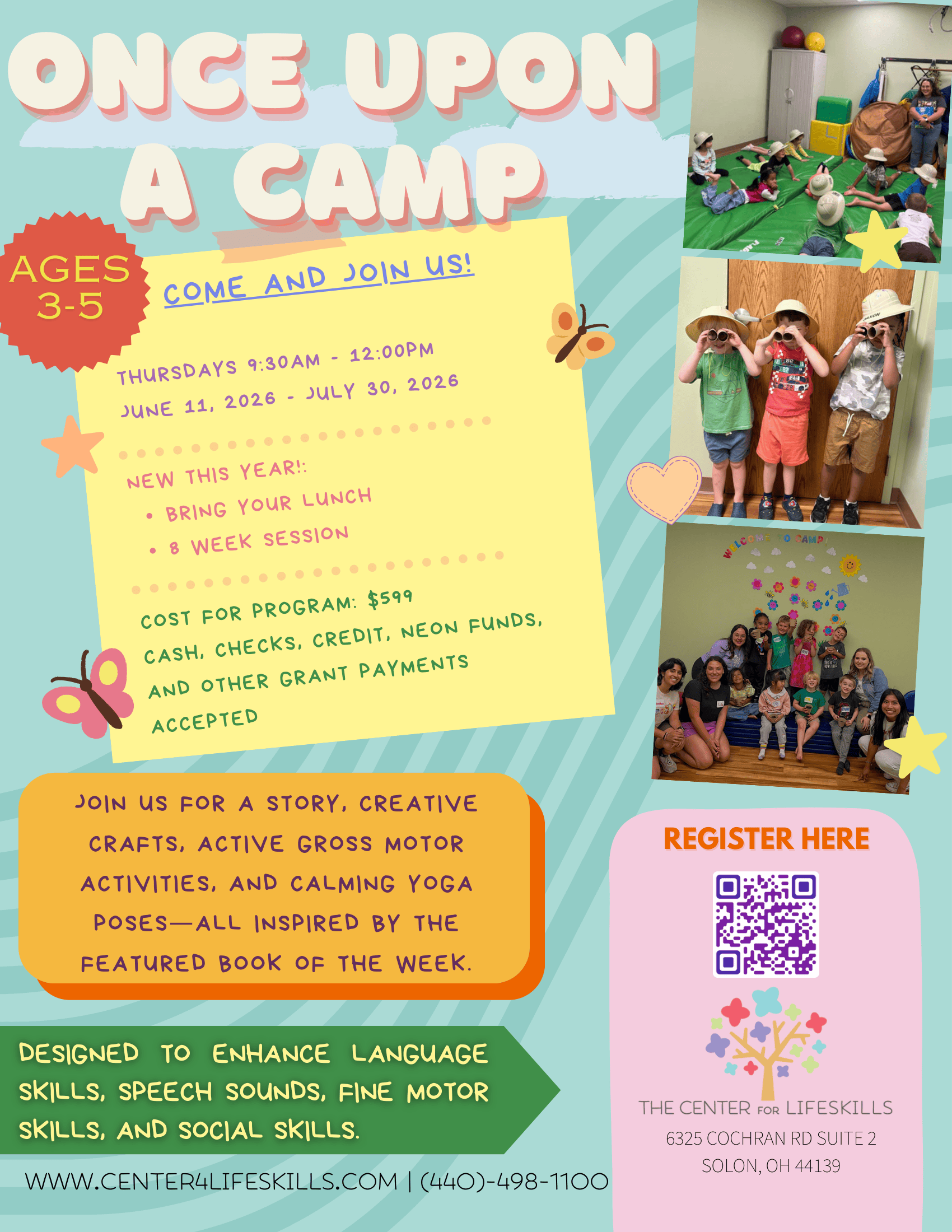 Once Upon a Camp is designed for preschoolers, with or without a diagnosis, who are able to communicate with peers and participate in group activities independently (without close 1:1 supervision at all times).